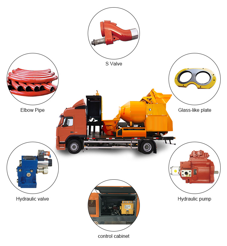 Truck mounted concrete mixer pump is combined by the concrete pump truck and the mixer together. This machine is apply to the concrete construction of house,highway, roadway, bridge, dam, slope protection and so on. To ensure the best performance, we produce the products using high-quality raw materials with standard producing technique under strict quality management.