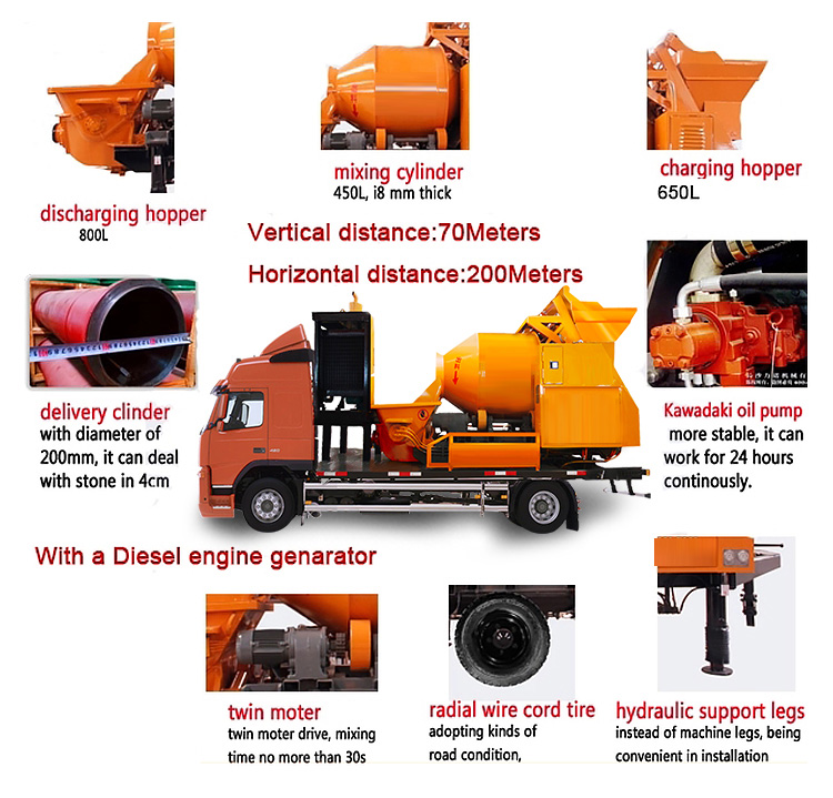 with a diesel electric switch engine generator, truck mounted concrete mixer pump greatly expanded the scope of construction, which can work with diesel power in the place of insufficient electricity.