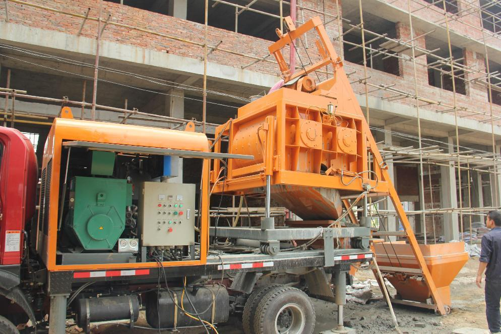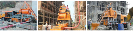 Truck mounted concrete mixer pump is combined by the concrete pump truck,converying system, the mixer system together. it mainly apply to the concrete construction of house,highway, roadway, bridge, dam, slope protection and so on. especially use to the rural area,mountain construction site.