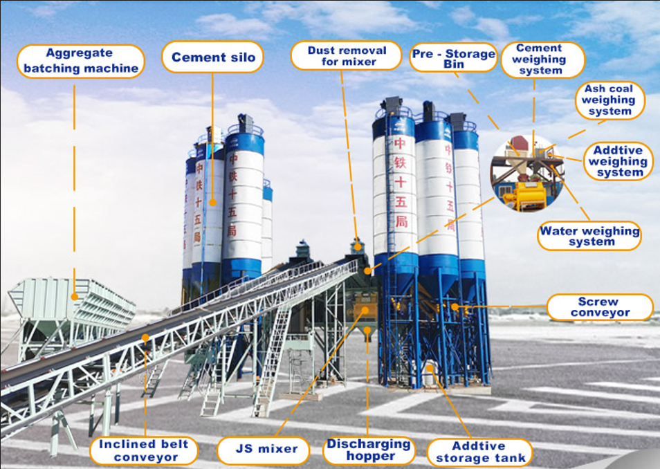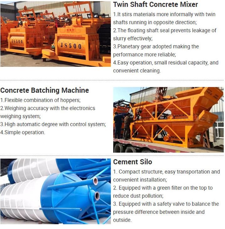 Adopting a modular structure, the installation and relocation of the whole machine are very convenient, and the equipment cost is low;The main machine adopts twin-horizontal shaft forced concrete mixer, which has good mixing quality and high efficiency;