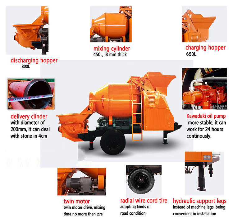 Concrete mixer pump is combined by the concrete pump and the mixer together. concrete mixer pump is apply to the concrete construction of house,highway, roadway, bridge, dam,slope protection and so on.