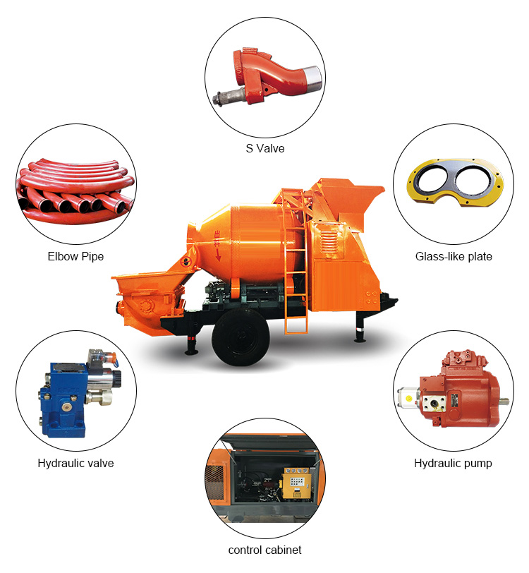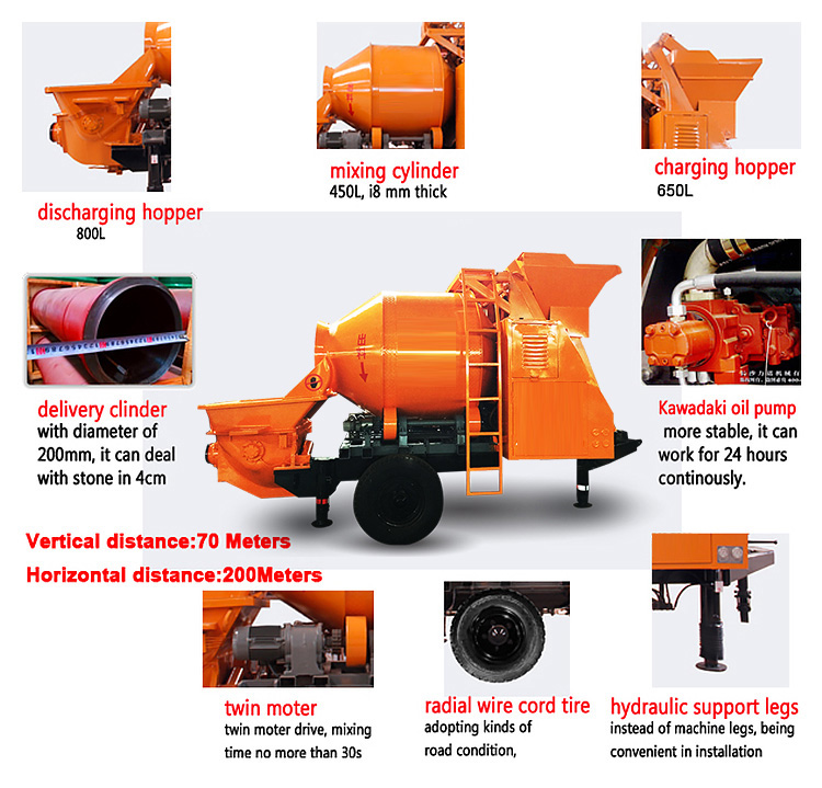 Concrete mixer pump is combined by the concrete pump and the mixer together. concrete mixer pump is apply to the concrete construction of house,highway, roadway, bridge, dam,slope protection and so on.